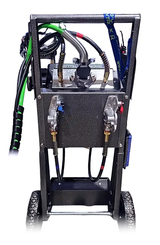 It also features a greater number of electrical connections than the pneumatic version, as it is primarily designed for recreational vehicle and residential applications. The unit is engineered to verify small residential trailers with standard 4-pin round connectors, 7-pin flat electrical connectors utilized on trailers equipped with electric and/or hydraulic braking systems (commercial trailers, RVs, etc.), and the standard 7-pin round connector for heavy-duty vehicle trailers.
