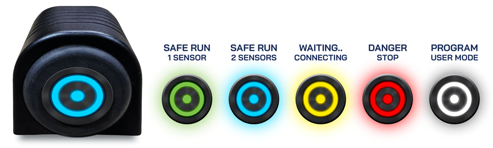 GREEN: System powered and connected to a sensor (Wi-Fi or wired synchronization)