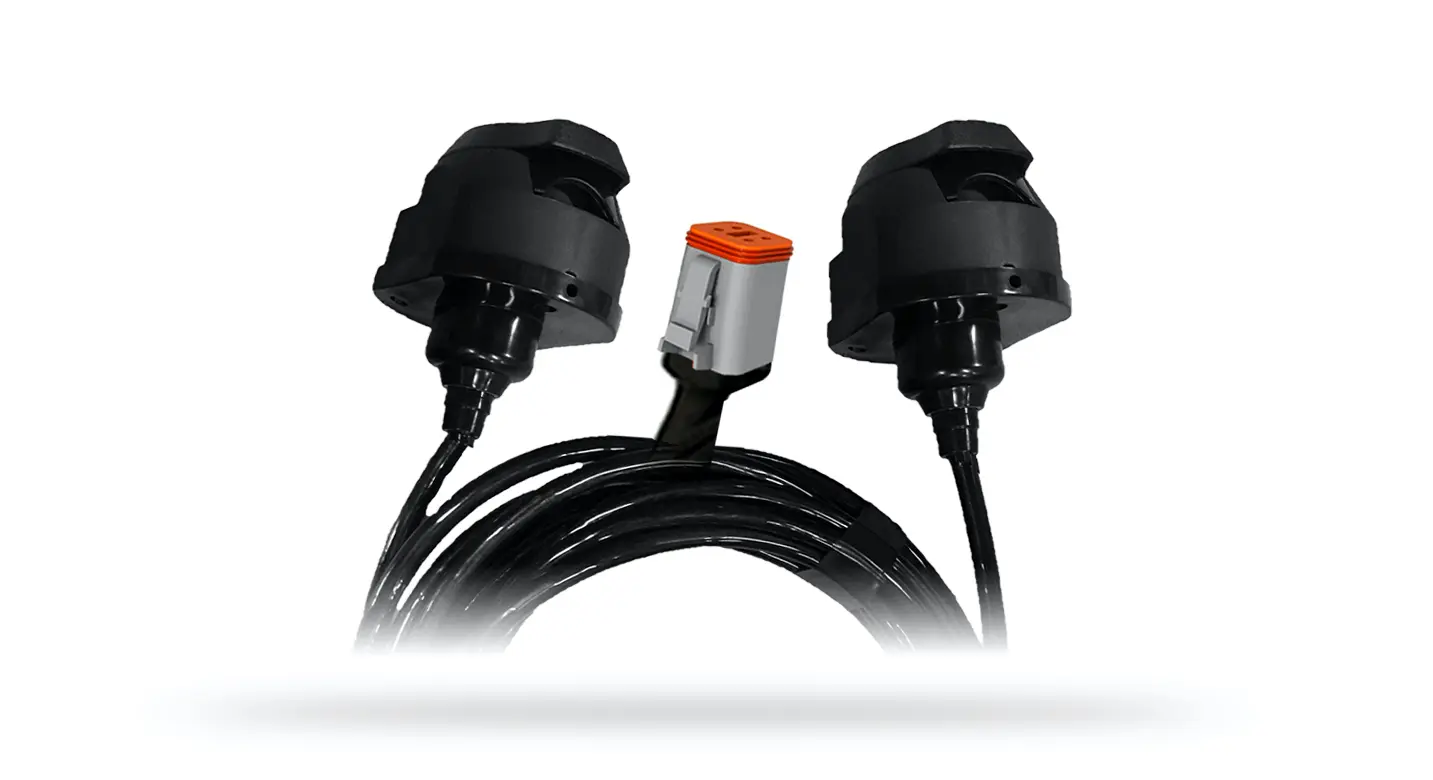 25 foot cable with double 4-pins Deutsch Connector to connect a trailer with a TipTRONIK TP2, TP3, TP4 raised dump box alarms system.